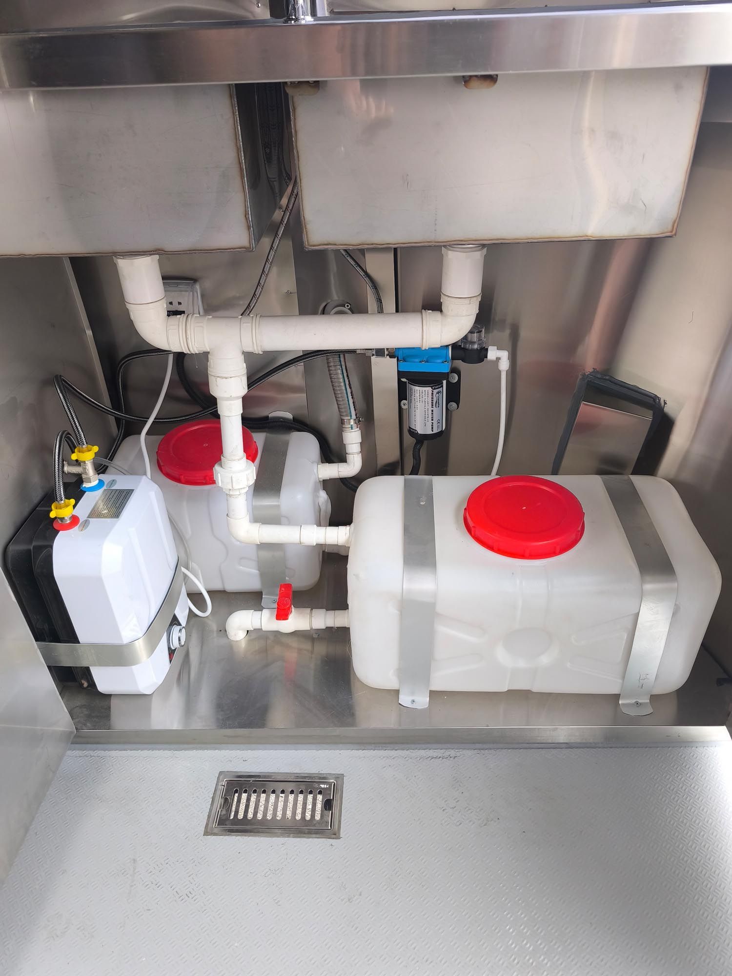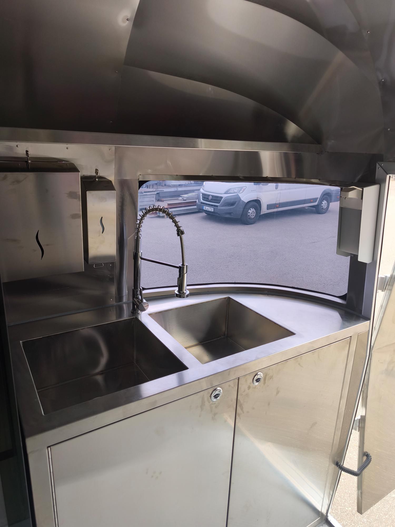 Inklusive warmem Wasser sowie Frisch- und Abwassertank für hygienische Abläufe in Ihrer Küche.